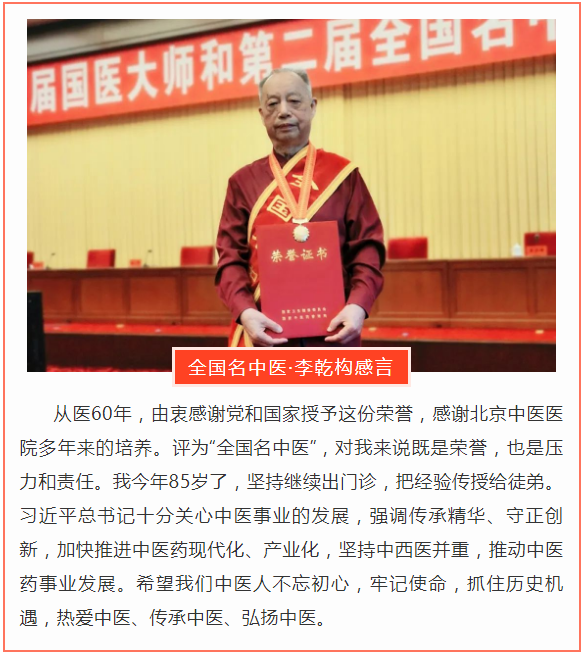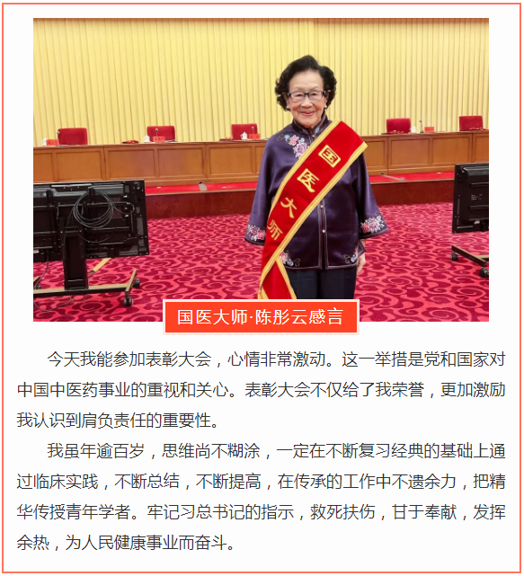 2022年7月20日,由人力资源社会保障部、国家卫生健康委员会、国家中医药管理局共同举办的第四届国医大师和第二届全国名中医表彰大会在京举行。我院陈彤云问鼎“国医大师”,李乾构、张炳厚、郁仁存(按姓氏笔画排序)荣膺“全国名中医”。