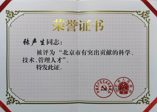 “北京市有突出贡献人才”是以市委、市政府名义评选表彰的具有重大影响力的人才专项奖励项目,自1984年设立以来,评选出一大批首都各界优秀人才代表,为全市广大人才树立了标杆和榜样,在全社会营造了积极进取、干事创业的良好氛围。每三年评选表彰一次,本批次共评选出49位“北京市有突出贡献的科学、技术、管理人才”。获得该荣誉称号是对张声生教授及其团队在本专业领域内医疗、科研等工作取得突出成就和贡献的充分肯定。