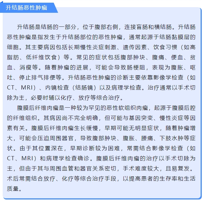 家人带着她来到当地医院检查,结果如晴天霹雳——升结肠恶性肿瘤、腹膜后巨大肿瘤。两个肿瘤就像两个贪婪的怪兽,疯狂地吞噬着于奶奶的身体能量,导致她消瘦、贫血、无法进食,还出现了肠梗阻、深静脉血栓等严重并发症。若不及时手术治疗,于奶奶的生命将被一步步吞噬。
