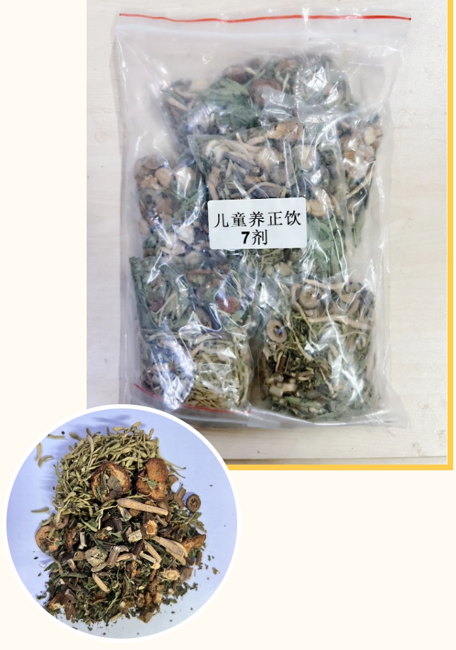 儿童养正饮主要成分为太子参、苍术、藿香、桑叶、生山楂等。具有健脾化湿、和中消滞的作用。适用于平时脾虚有湿,多汗,大便粘腻不畅的儿童。可以和润肺清心饮一起同用,有助于肺热脾虚的儿童预防呼吸道感染的发生。