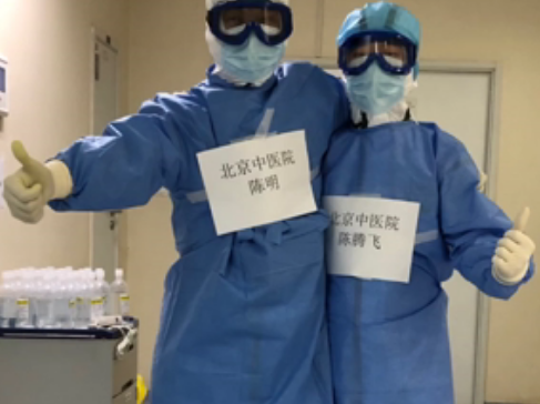 1月30日,大年初六,援鄂医疗队队长陈明、队员陈腾飞进入隔离病房工作。
