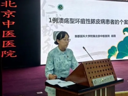 北京中医医院皮肤科护士长胡薇讲解了《1例溃疡型坏疽性脓皮病患者的个案报告》,以皮肤科特色护理技术引入案例,在综合运用中西医治疗手段,以及针对性的护理措施后,患者病情得到改善,为后期类似案例的护理提供借鉴。