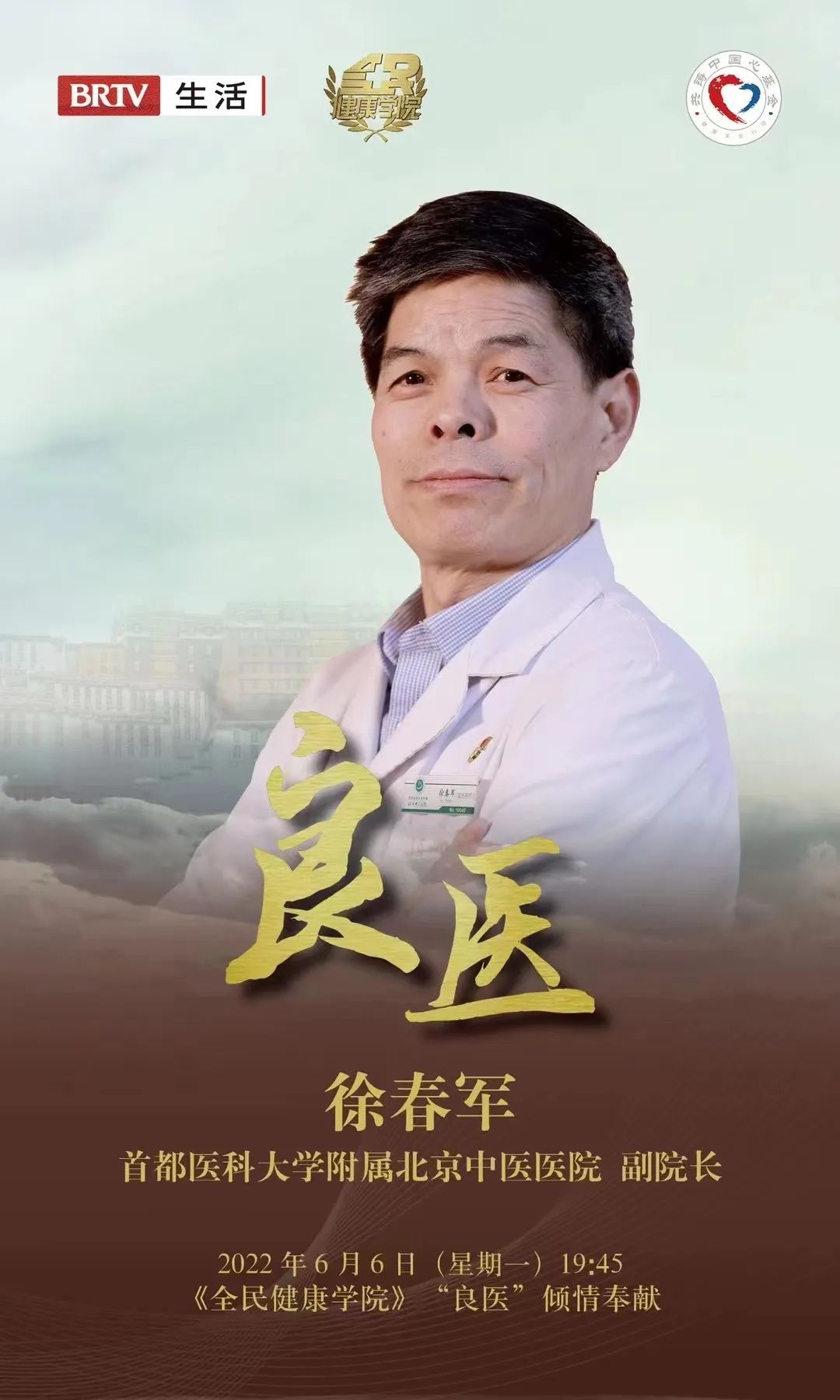 今晚7:45《全民健康学院》之“良医”,让我们共同走近首都医科大学附属北京中医医院副院长 徐春军的医学世界。