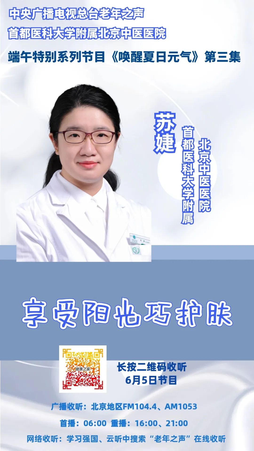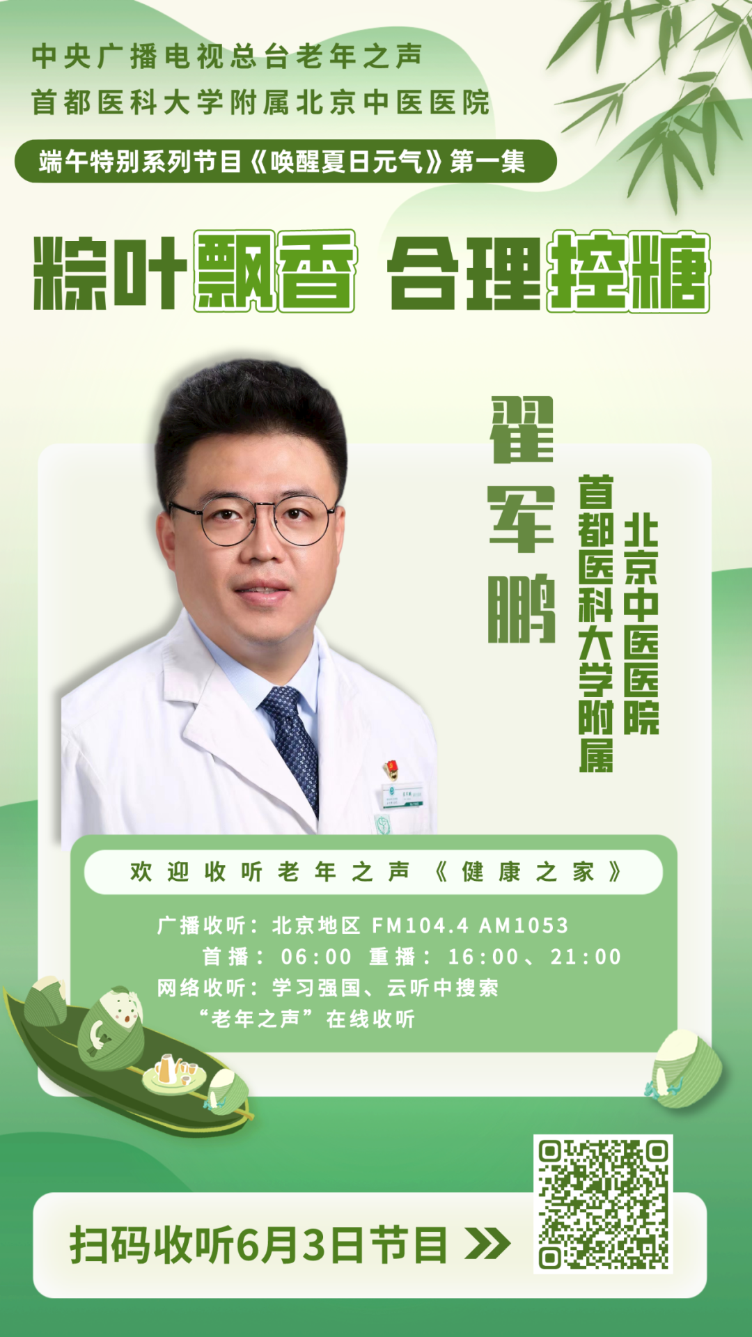 端午时节,天气逐渐变热、多雨、潮湿、容易生病,再加上蛇虫繁殖,易咬伤人。如何养生成为不少人关注的重点。我院专家做客中央广播电视总台“老年之声”,教您如何唤醒夏日元气,敬请关注。