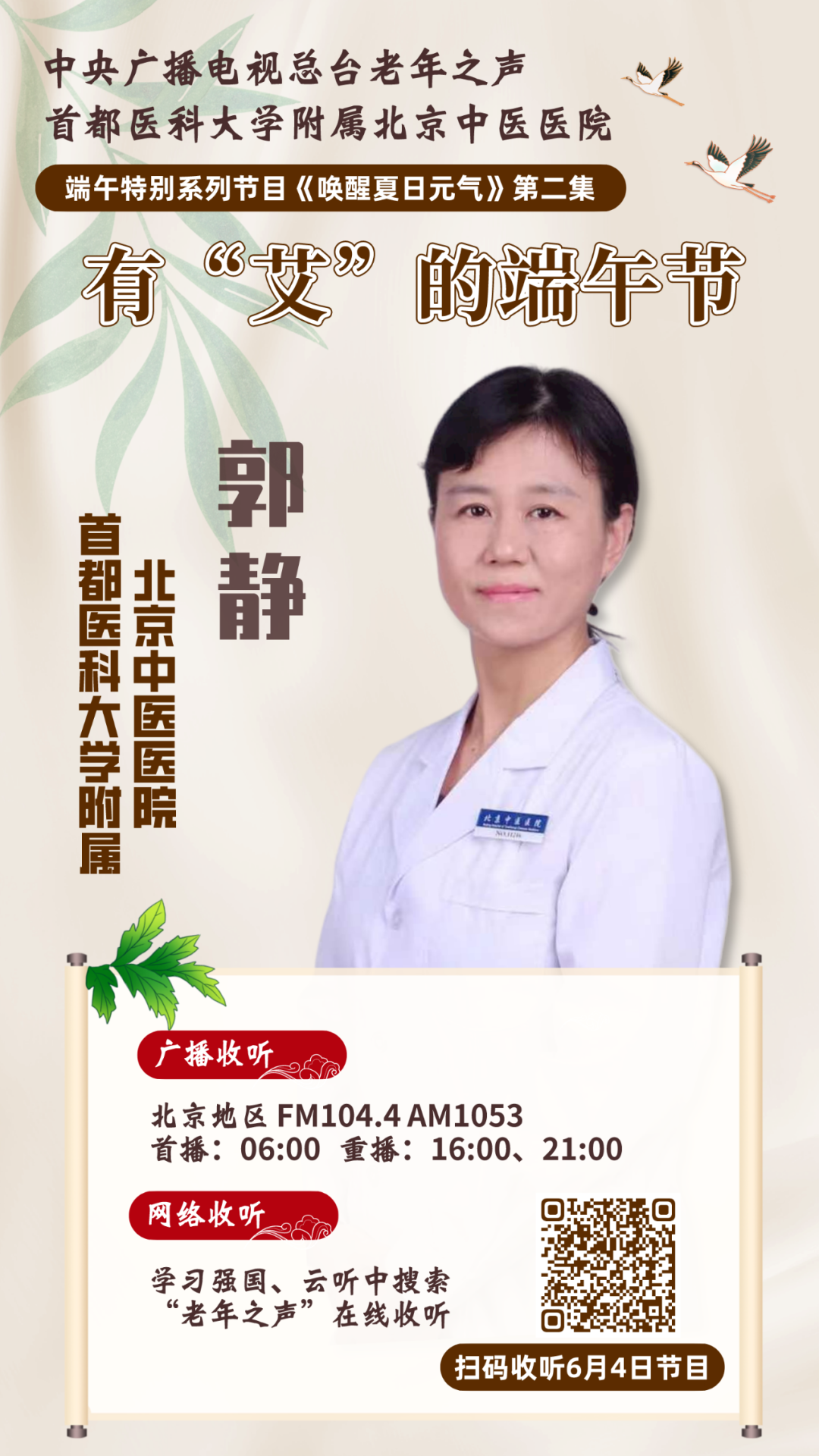 艾灸正当季,祛湿补阳气。6月4日,针灸/康复/神经内科郭静主任医师教您过个有“艾”的端午节。