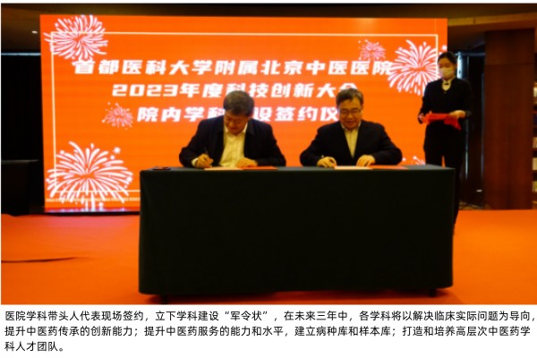 医院学科带头人代表现场签约,立下学科建设“军令状”,在未来三年中,各学科将以解决临床实际问题为导向,提升中医药传承的创新能力;提升中医药服务的能力和水平,建立病种库和样本库;打造和培养高层次中医药学科人才团队。