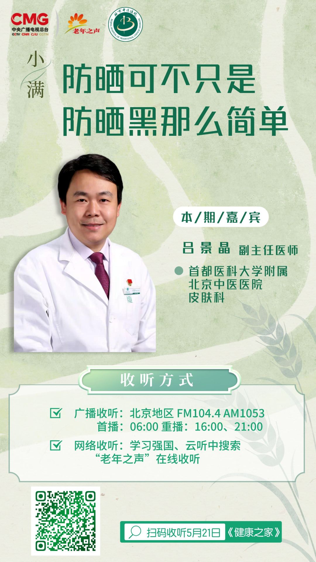 小满节气后,天气逐渐由暖变热,需要做好防暑防晒措施。北京中医医院皮肤科副主任医师吕景晶中央广播电视总台老年之声,为您讲解《防晒可不只是防晒黑那么简单》。