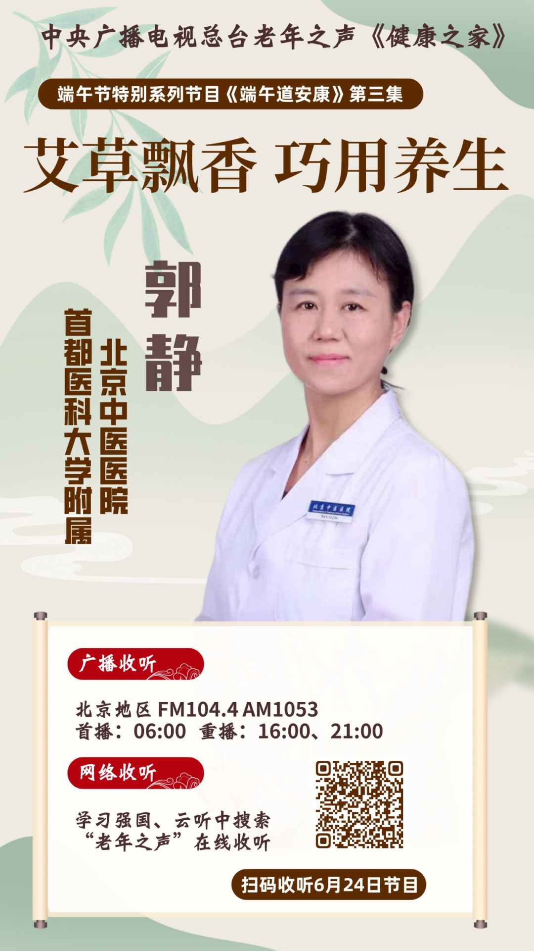 在众多端午风俗中,有一条就是挂艾草。艾草在我国古代就一直是药用植物,针灸里面的艾灸,就是用艾草作为主要成分,放在穴道上进行灼烧来治病。经常听说这样一句话:“家有三年艾,郎中不用来”,到底应该怎样用艾养生?北京中医医院针灸/康复/神经内科郭静主任医师为您详解。