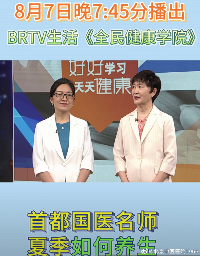 今晚7:45,北京中医医院首都国医名师夏军、心血管科主任医师仇盛蕾做客北京广播电视台生活频道《全民健康学院》,为您详解夏季养生。