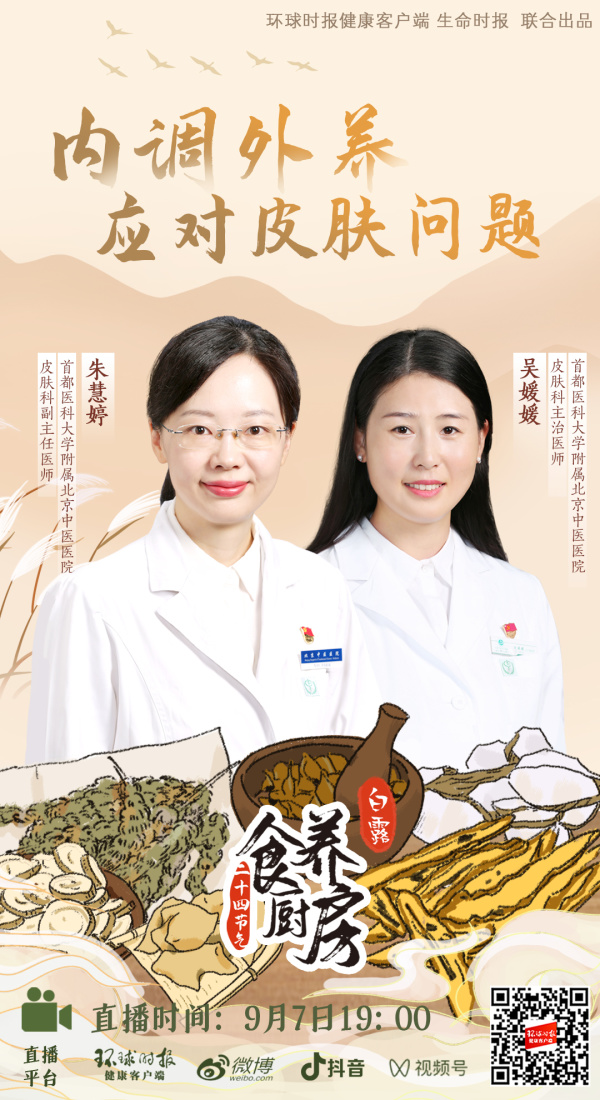 首都医科大学附属北京中医医院皮肤科副主任医师朱慧婷、主治医师吴媛媛做客《生命时报》“二十四节气食养厨房”直播,分享秋季护肤方法和心得。