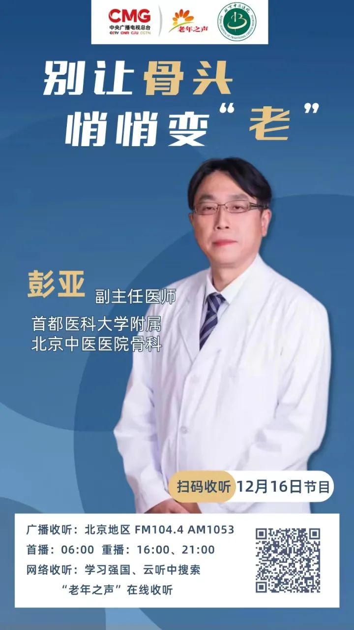 首都医科大学附属北京中医医院骨科副主任医师彭亚做客中央广播电视总台老年之声,为您详解《别让骨头 悄悄变“老”》。