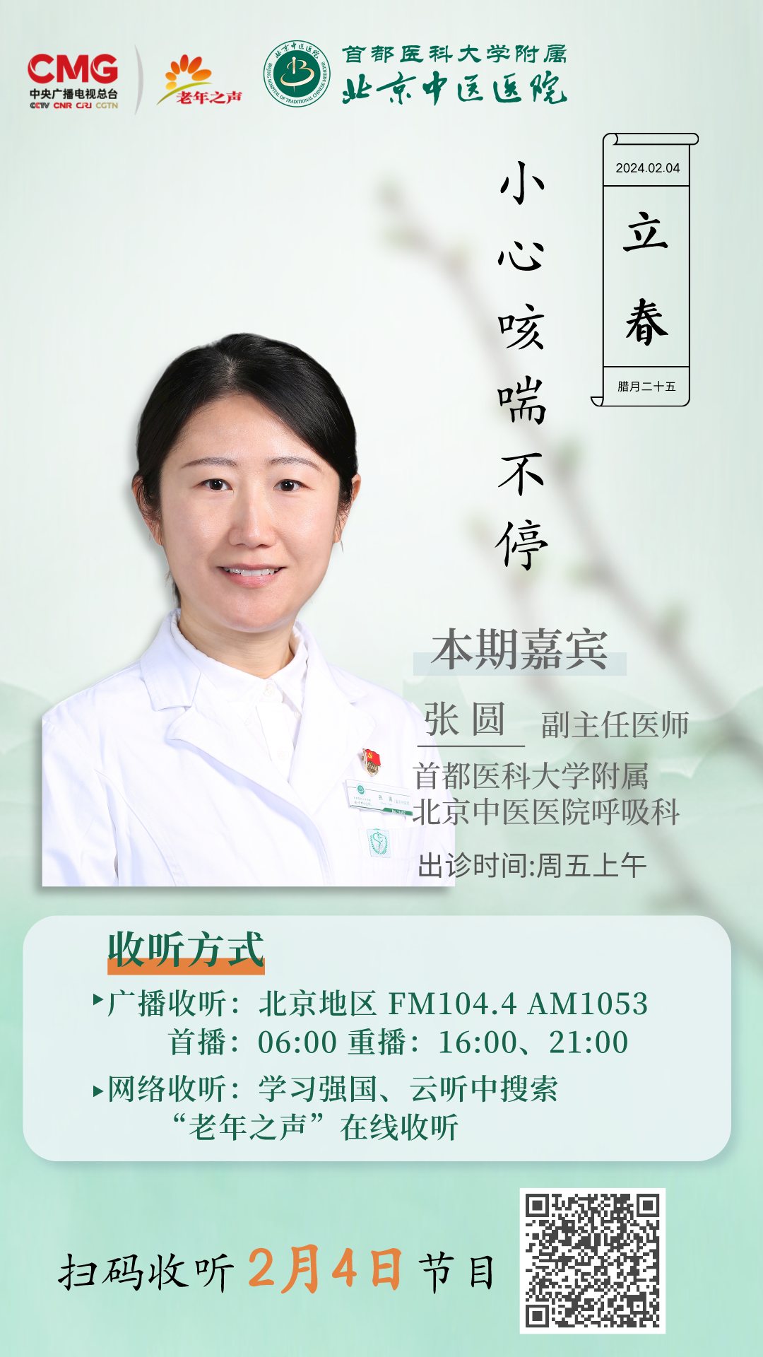 首都医科大学附属北京中医医院呼吸科副主任医师张圆做客中央广播电视总台老年之声,为您详解“立春,小心咳喘不停”。
