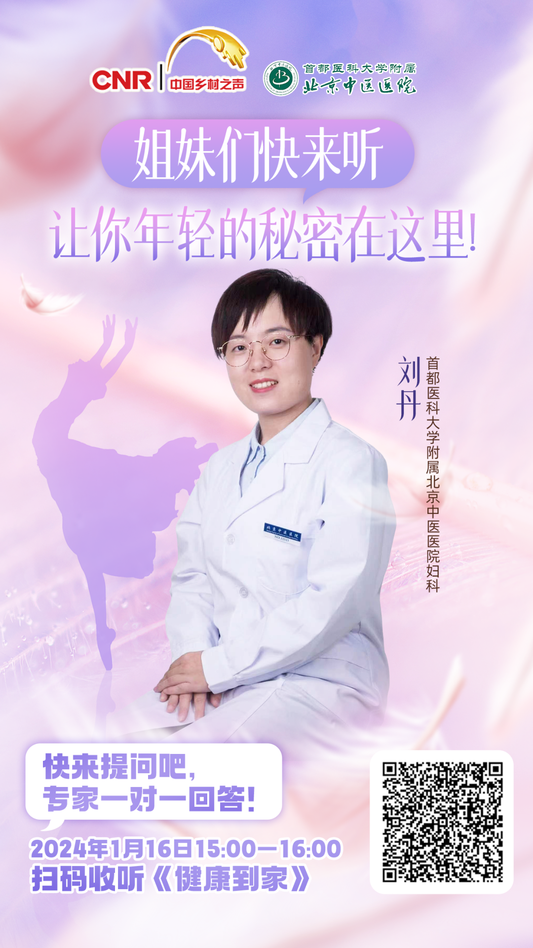 1月16日,首都医科大学附属北京中医医院妇科刘丹医生做客中央广播电视总台乡村之声,详解“让您年轻的秘密”。