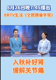 今晚19:45,北京中医医院风湿病科主任医师张秦做客北京广播电视台生活频道《全民健康学院》,为您讲解入秋补好肾,缓解关节痛。