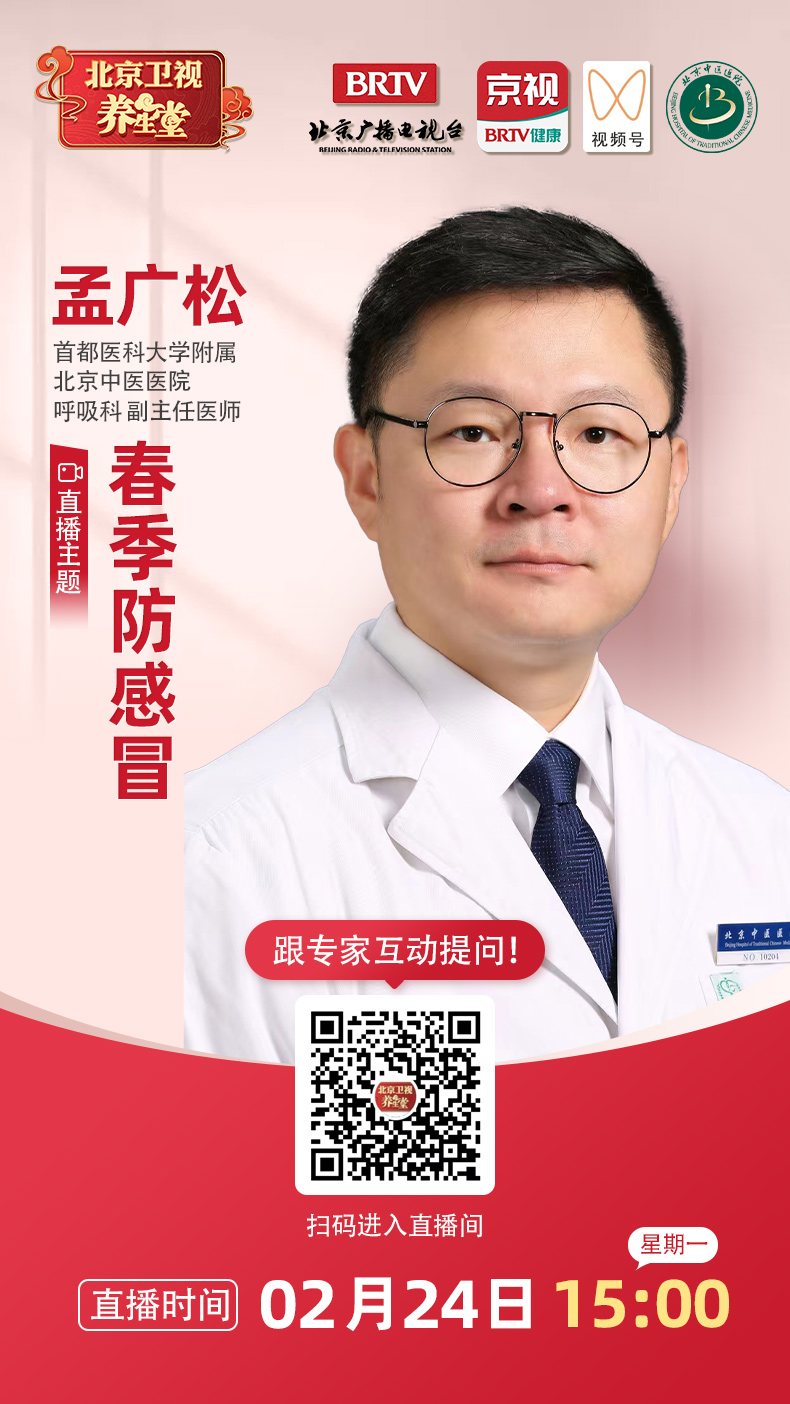 2月24日15:00,首都医科大学附属北京中医医院呼吸科主任医师孟广松做客北京卫视养生堂直播间,为您讲解春季防感冒。