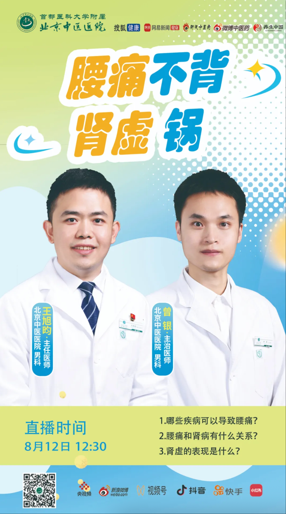 宽街·明医说 | 8月12日12:30 我院男科专家做客北京中医医院科普直播间,讲解“腰痛不背肾虚锅”