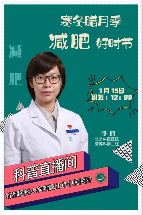 关于减肥,你所有的疑问,答案尽在1月15日(本周五)中午12点北京中医医院科普直播间。营养科副主任佟丽,带你一起揭开减肥的谜底。快留言给我们,写下你减肥当中的疑问,道出你的减肥瓶颈。