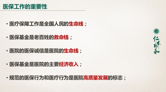 按照北京中医医院2023年度运营助理员系列培训活动的安排,自第四期起培训进入“临床管理面对面”专题。10月20日上午,医保培训专场在阶梯教室如期举办。医保办主任杜琨为与会运营助理员进行了医保政策和院内考核指标的分析解读,科室相关工作人员同步收看线上直播。