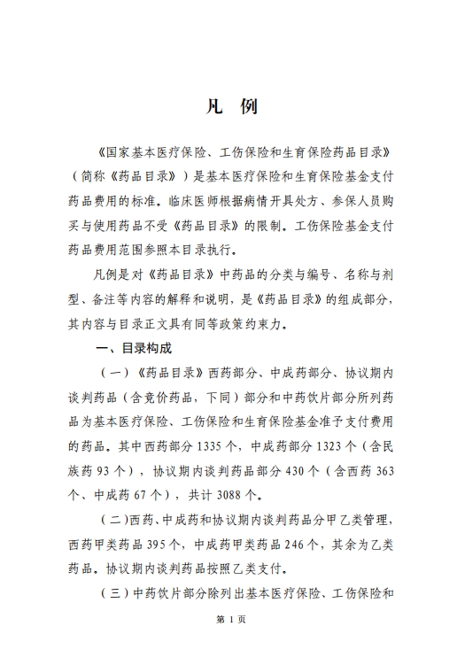 国家基本医疗保险、工伤保险和生育保险药品目录