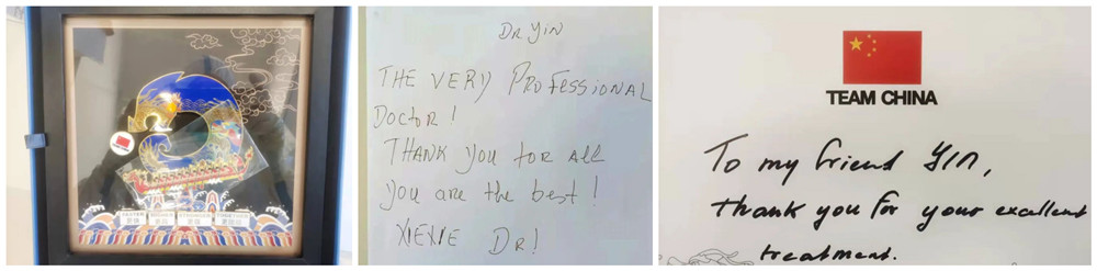 一封封由各国文字书写的感谢信,通过各种方式送到我院冬奥保障医疗队队员的手中,一句句手写的感谢话语,寄托的不仅仅是一声声真挚的谢意,更是对中医的认可和信任。