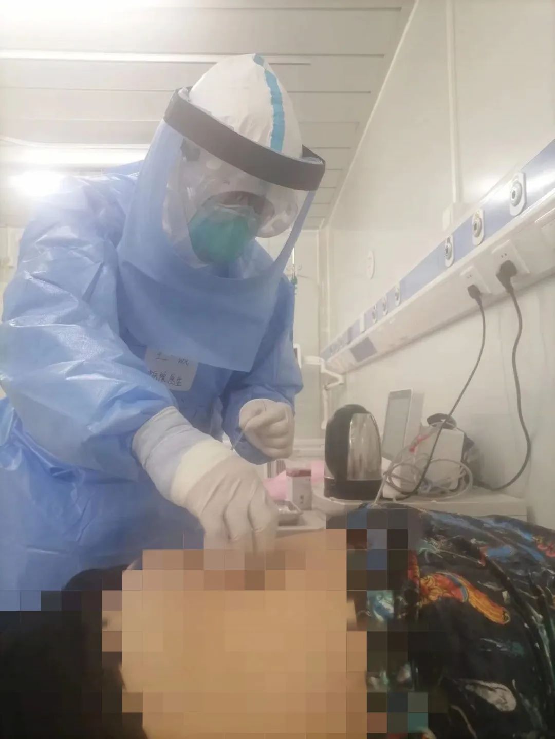 前期严格的院感培训、穿脱防护衣,经反复加练,早已熟稔于心,王一战顺利通过考核。进驻隔离病房后,在实践中优化针刺流程,着力提高工作效率,不断满足患者的针刺治疗的需求。