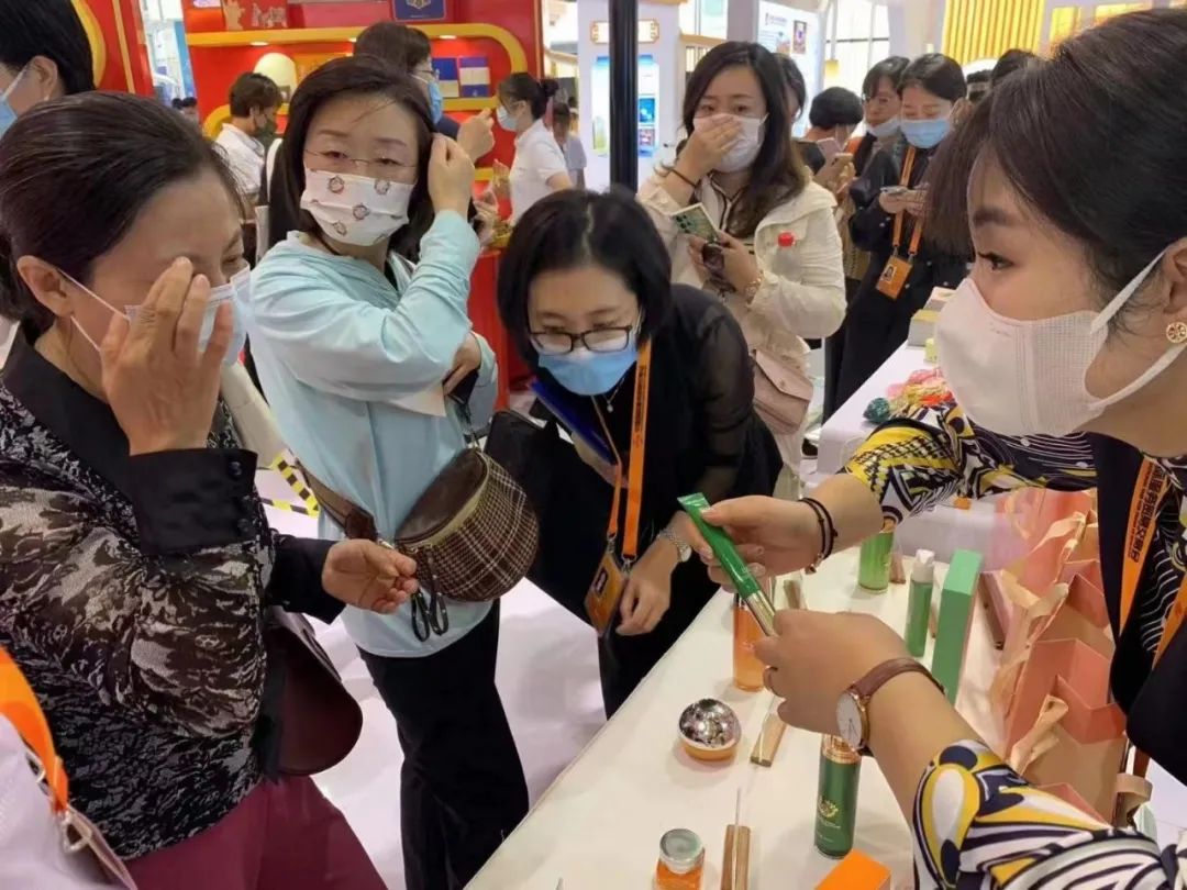 特色成果转化产品陈彤云系列化妆品依然是此次我院服贸会展台的亮点,“洋参靓肤系列”和“金花清爽系列”产品是国医大师陈彤云教授几十年理论与临床实践总结的精品,良好的效果让陈彤云系列化妆品吸引了众多忠实粉丝。