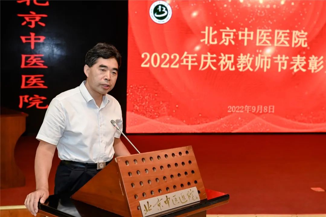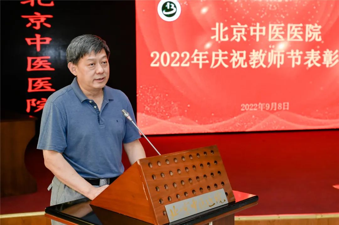 刘清泉首先向全体教师致以节日的慰问!他表示,一年来我院圆满完成首都医科大学和北京中医药大学的教育教学任务和中医住院医师规范化培训工作。首都医科大学中医学专业成为国家级一流本科专业建设点,我院先后获评国家中医药管理局中医住院医师规范化培训重点专业基地和中医教学门诊示范基地,并在教育教学方面取得了长足发展和进步。