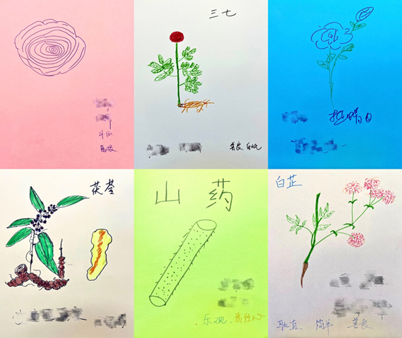 在“绘出自我”环节,医务社工邀请在场组员为自身拟定“中草药代号”,绘制姓名卡,向他人展示。“白芷”讲述,自己取女儿名字中的“芷”字作为代号,寄予对女儿的期望与祝福;“茯苓”介绍,自己正如这味草药,味甘、淡,性平...在医务社工引导下,组员们感受到:看似无意间拟定的代号,背后却隐藏对自我深入的探寻、了解。