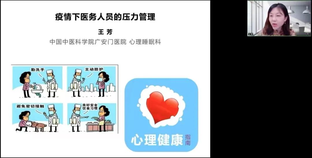 在第一期项目活动中,广安门医院心理睡眠科副主任医师王芳为大家开展了一堂生动的线上压力管理培训。此次培训也吸引了项目组以外的医务人员积极参与,培训当日共计有258名职工参与,受到了广泛好评。
