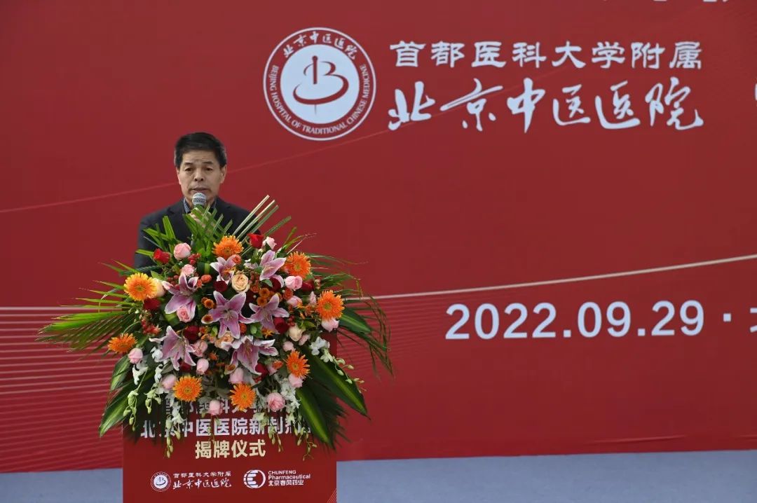 北京市药品监督管理局屈浩鹏副局长致辞表示,北京中医医院新制剂室建成并正式投入运营,是北京推动医疗机构制剂产业升级、优化资源配置、促进产业发展工作取得的重要成果,也是北京中医医院谋发展、为民生、勇担当的重要举措。希望北京中医医院利用怀柔区的优质营商环境和药企的生产研发优势,进一步加强医疗机构制剂研发,积极推动制剂向新药转化。
