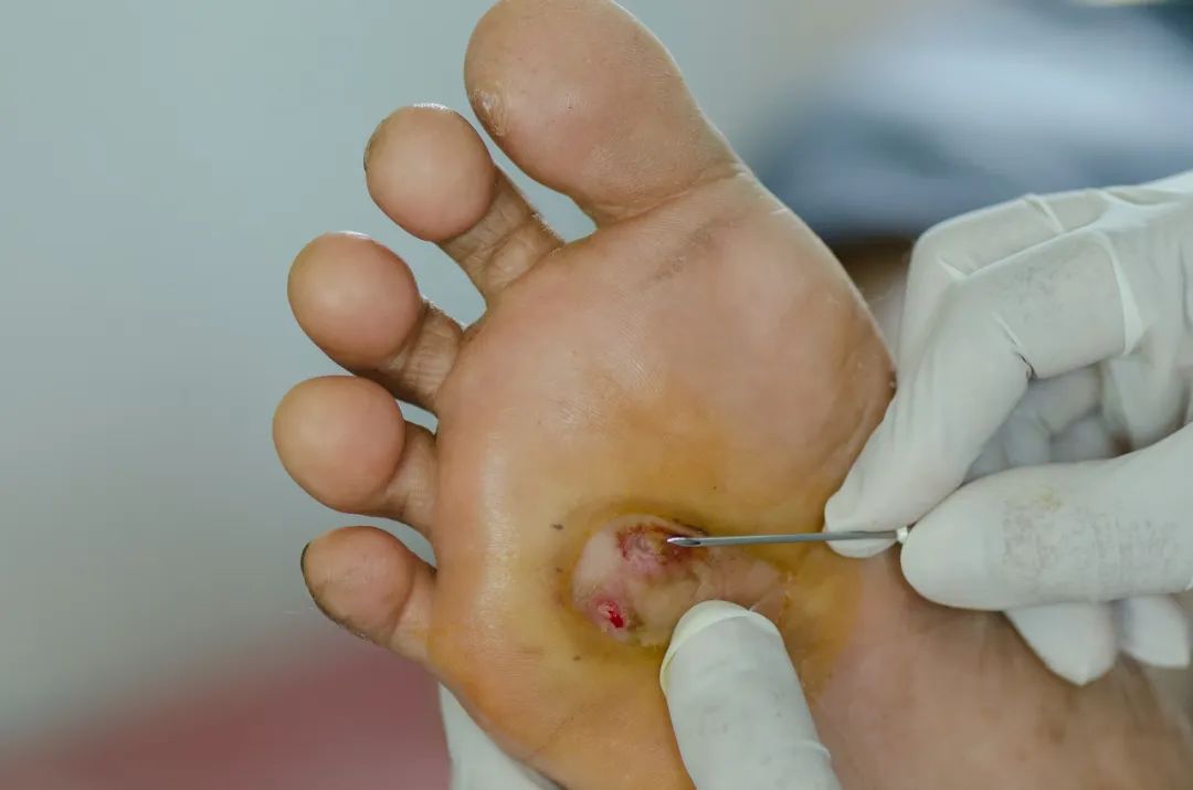日常检查:每日检查足底、趾缝、脚跟有无皲裂、溃疡、胼胝等。