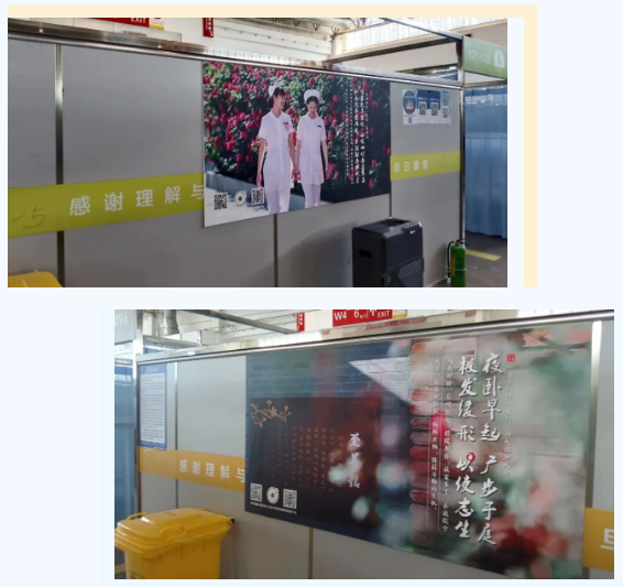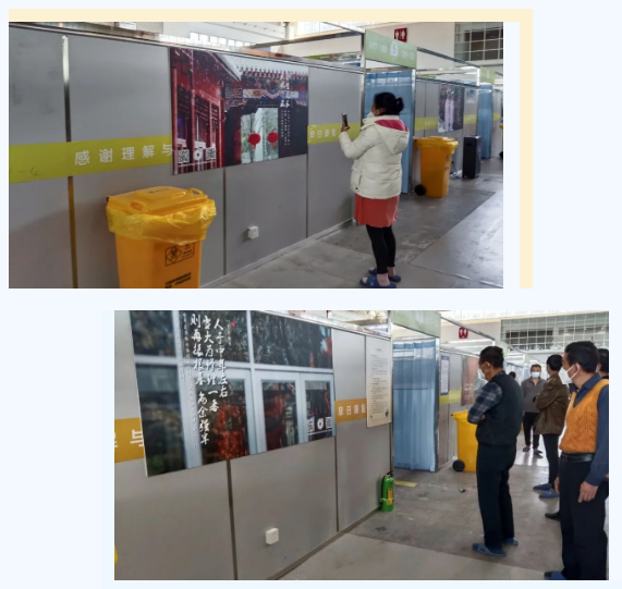 被海报吸引的不只是患者,在舱内工作的医护人员看到医院景色和同事们的照片“来”到了方舱里也是分外激动。“这不是我们医院的那条路嘛?现在看起来分外亲切!”“我在方舱看到你的照片了,就感觉你在和我们共同战斗一样!”有的医务人员出舱后迫不及待地将方舱内的“重逢”与同事分享。