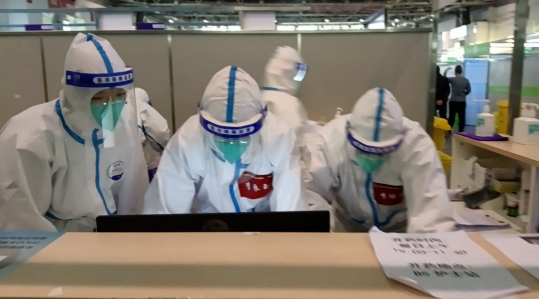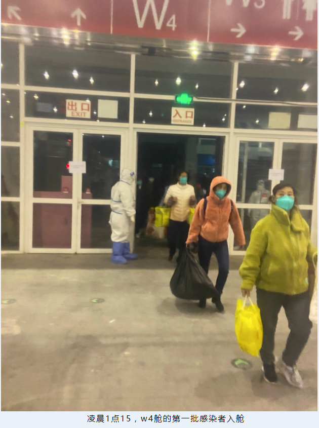 160位医务人员组成的医疗队被迅速分成多个工作小组。医疗组、护理组、感控组、党建工作组、后勤保障组、患者服务保障组、信息数据保障组……一个“小医院”的架构应运而生。方舱内每6小时一班,每班由3位医生和12位护士组成。23日凌晨1点15分,W4舱迎来了第一批感染者。寒冷的冬天,医务人员需要快速登记每一位感染者的信息、询问病情并他们安排入舱位。