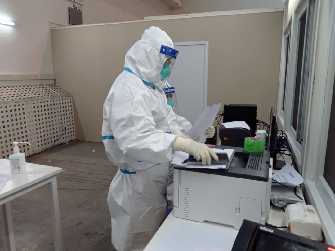 面对瞬间涌入的感染者们关心的各种医疗、非医疗的问题,十几位医护人员顾不上与感染者们保持距离,不断上前安慰,不停地大声解释,将感染者们领入舱位,六个小时下来口罩不知不觉就潮湿了,感染的风险也随之增大。在大量气溶胶聚集的千人方舱里工作,防止医务人员被感染是重中之重。管理团队准确判断,迅速将班次调整为4小时一班。虽然一定程度上牺牲了队员的休息时间,但在最大程度减少他们被感染的风险,确保安全和服务质量。