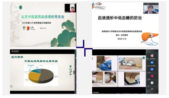 血液透析患者是一个带病生存的特殊群体,关注血透患者的突发事件一直是肾病科工作的重要一环。为了进一步普及透析过程中低血糖防治、谨防血管通路生命线意外、提高血透患者心血管并发症知晓率,提供高质量的医疗服务,改善患者生活质量。3月8日,肾病科血液透析室为血透患者带来线上科普讲座和零距离问答与交流,45名血透肾友及家属参加了本次会议。