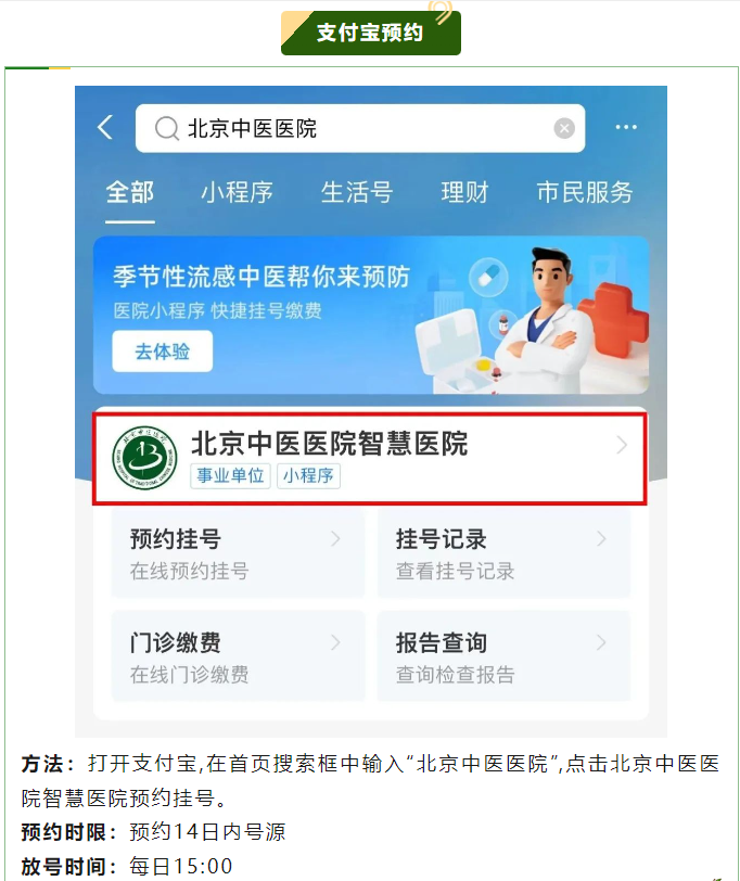 为满足广大群众就医需求,进一步改善患者就医体验,114预约平台投放新号源时间调整为每日15点,与北京中医医院微信公众号等其他平台放号时间保持一致。
