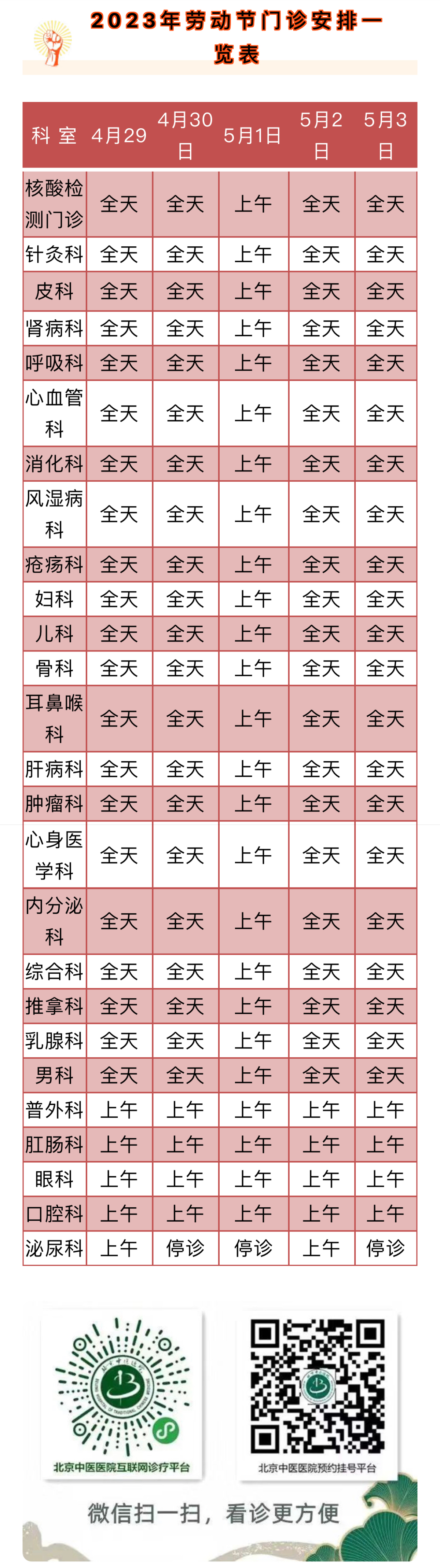 ■核酸检测门诊(含应检)5月1日上午半日门诊,4月29日、4月30日、5月2日、5月3日全天门诊。