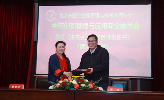 北京市医院创新管理与技术应用协会副会长兼秘书长张骏宣读协会成立专委会的《批复》和《主任委员任命书》,与吴剑坤签订《主要负责人廉洁承诺书》和《主任委员工作目标责任书》。