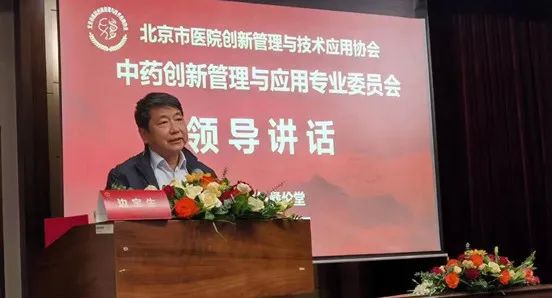 北京市医院创新管理与技术应用协会会长边宝生同志致辞,对中药创新管理与应用专业委员会的成立表示热烈祝贺,同时指出,专委会应以中药制剂创新转化、中药文化的发展与传承等为工作重点,以学术交流、科技创新、医疗、药学服务等为专委会的工作内容,充分发挥委员以及委员单位的特色优势,促进中药产、学、研、医、政融合,从而更好地推动中药卫生事业的进步和发展。