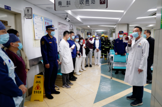 为进一步深化“平安医院”建设,切实增强全院职工的消防安全意识和突发事件应急处置能力,4月27日北京中医医院以门诊二层骨科为现场模拟了消防演练,邀请王府井消防中队副队长王文斌现场指导,科室负责人、护士长、消防安全员30余人现场观摩学习。