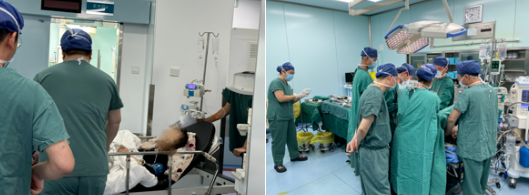 一位45岁女性患者,由于意识丧失入院,经系统检查后,确诊低血容量性休克,脾破裂,肋骨骨折,椎间盘突出,病情十分凶险,完善外科会诊后,建议紧急急诊手术。由于夜班人员相对较少,手术室在接到通知后,紧急调配人员,争分夺秒进行准备,配合外科医生抢救。患者在全麻下行腹腔探查术、脾切除术以止血,由于患者腹腔出血量较多,已造成左心室舒张功能减低,术中又补充悬浮红细胞800ml。手术室护士们迅速反应,有条不紊,使得手术顺利完成。