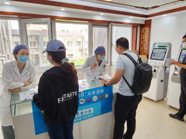 皮肤科主任医师曲剑华、杨岚,副主任医师吕景晶、曹洋、王倩、朱慧婷,主治医师刘荣奇、金奇英、马卉、蔡一歌,住院医师赵子赫在义诊活动中为患者解疑答惑,现场发放了护肤科普手册及相关护肤宣传资料,受到广大患者一致好评。