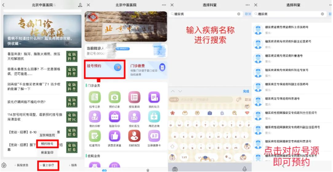 挂号路径:北京中医医院微信公众号-掌上诊疗-预约挂号-挂号预约-XX专病号(可直接在搜索栏输入疾病名称)