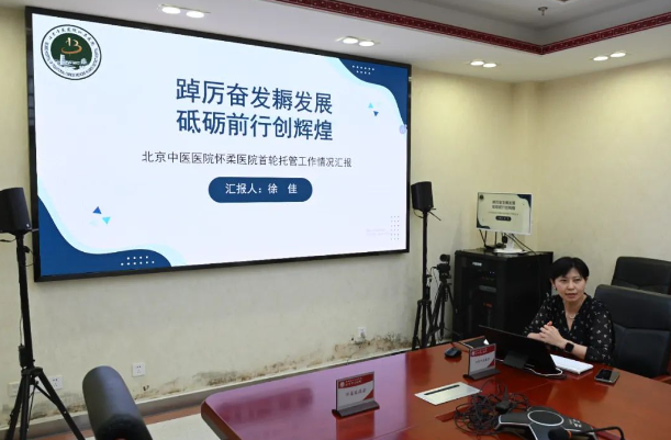 北京中医医院怀柔医院院长徐佳进行托管工作汇报。她表示自2017年12月托管共建开展以来,各方按照职责积极开展工作,推进北京中医医院优质医疗资源引入怀柔,以怀柔区中医医院建设“三级甲等中医医院”为目标和抓手,着力加强学科建设、医疗质量安全、干部队伍建设和人才培养、医院精细化运营管理、医院文化建设等方面的工作,实现深度融合。医院顺利完成了迁建、“三甲”中医医院创建、抗击新冠疫情等重点工作任务,实现了怀柔区三级甲等医院“零”的突破。北京中医医院与怀柔区中医医院共建合作成效显著,实现了患者得实惠、医生得提升、医院得发展、政府得美誉的预期目标。