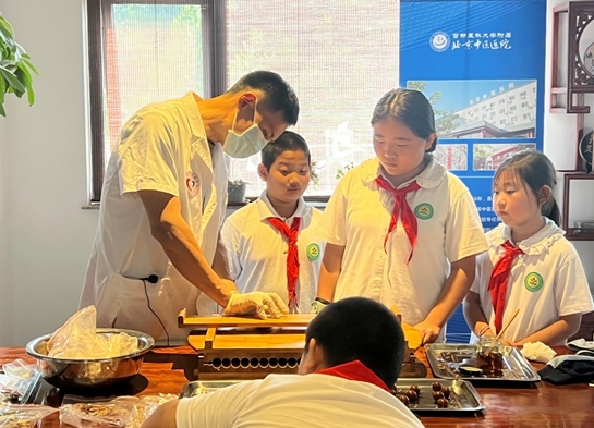 9月23日-24日,“第二届中国健康好乡村农民丰收节”在北京市怀柔区召开,并在燕山山脉道地中药材文化博物馆进行中医药文化科普实践。北京中医医院药学部作为医院代表参展,制剂室张恂药师和药剂团支部书记史梓彤药师到现场推广宣传北京中医医院特色制剂的发展成果,并指导青少年体验传统技艺,亲手制作古法良药大山楂丸。