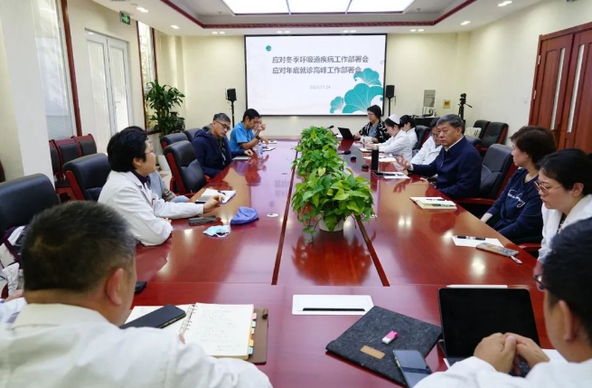 11月24日,北京中医医院召开应对冬季呼吸道疾病就诊高峰工作部署会,院长刘清泉、副院长杨国旺及相关科处室负责人参加会议。