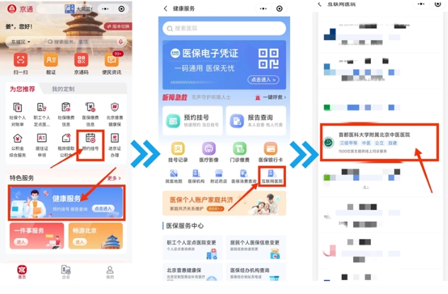 为方便患者线上就诊,北京中医医院互联网医院已于近日登录“京通”平台,患者只需在微信“京通”小程序主页面点击健康服务或预约挂号,找到“首都医科大学附属北京中医医院”,即可进入我院互联网医院小程序进行线上就诊。