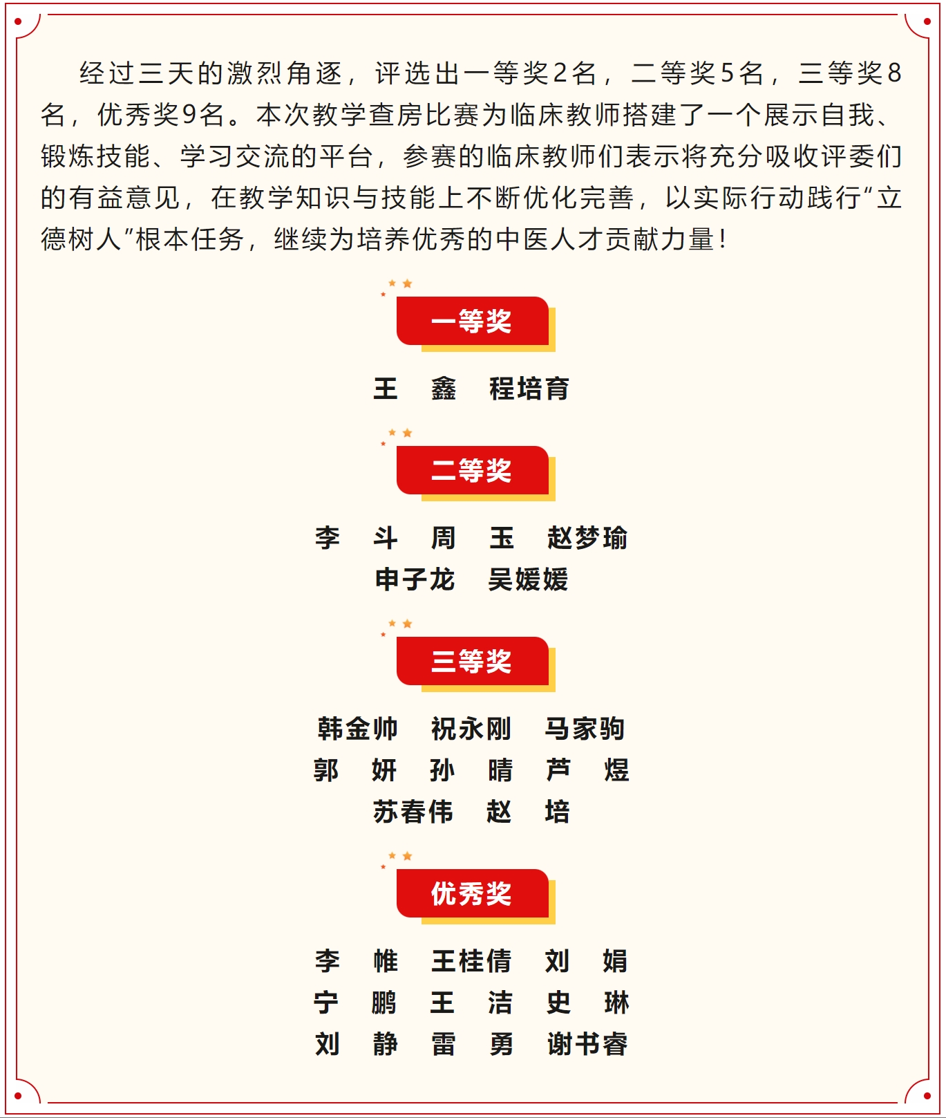 为推进医院教学工作高质量发展,进一步提高临床培养质量和教学水平,北京中医医院举办第六届教学查房比赛,来自24个科室/病区的临床教师参赛。