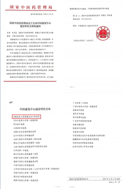 近日,国家中医药管理局下发中医康复中心建设单位名单的通知,“经逐级推荐,专家评估等程序,确定首都医科大学附属北京中医医院等31家中医医院为中医康复中心建设单位。”本次获批国家局中医康复中心建设单位,标志着我院针灸中心下设的康复科已晋升到国家队行列,将助力我院康复专科的快速发展。
