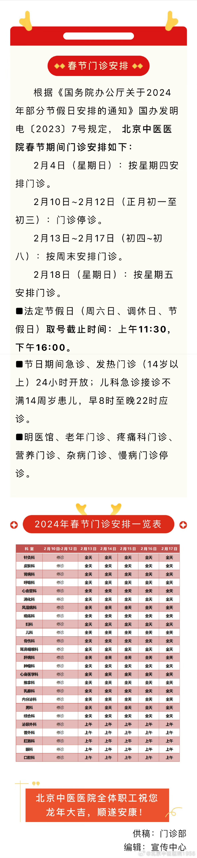 宽街·便民 | 北京中医医院2024年春节门诊工作安排